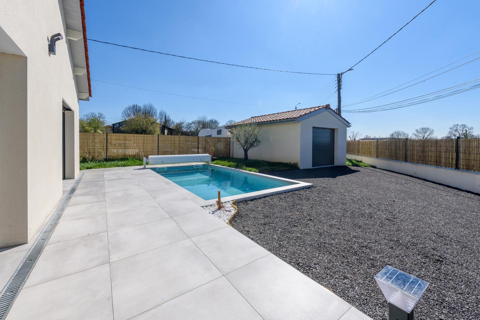 Proche de toutes les commodités (commerces, écoles, collèges , lyçée, hôpital , métro, gare sncf) . Venez tomber sous le charme de cette Magnifique Maison Neuve T4 (2024) de Plain Pied,aux normes RE 2020 (pour une économie absolue de vos consommations énergétiques), sous garantie décennale . 120 m2 de modernités,composés d'une très grande pièce de vie Lumineuse de 60 m2 environs (Dont la cuisine reste à aménager à votre goût) donnant sur une Terrasse carrelée de 25 m2. Vous y trouverez , 3 chambres dont une suite parentale,une salle de bain ,une salle d'eau ainsi que 2 wc. Confort ABSOLU de A à Z avec des Matériaux de Grandes Qualités; vous y trouverez un chauffage au sol ainsi qu'un système de climatisation réversible en gainable (avec commmande centrale). Tout ceci sur un terrain de 500 m2 Totalement clôturé composé d'un beau Garage de 25 m2 indépendant , ainsi que de sa piscine (6x3) chauffée avec volet roulant.Possibilité de garer plusieurs véhicules dans la propriété. Coup de Coeur Assuré !!! Contactez rapidement Agence - Les informations sur les risques auxquels ce bien est exposé sont disponibles sur le site géorisques : www.georisques.gouv .fr Visitez ce bien RARE Annonce rédigée et publiée par l'agence slmplissimmo num 5953869773 RCS TLS Date de réalisation du diagnostic énergétique : 17/03/2025 Consommation énergie primaire : 55 kWh/m²/an Consommation énergie finale : 0 kWh/m²/an Montant estimé des dépenses annuelles d'énergie pour un usage standard : entre 580 € et 850 € sur les années 2021, 2022 et 2023 (abonnements compris).
